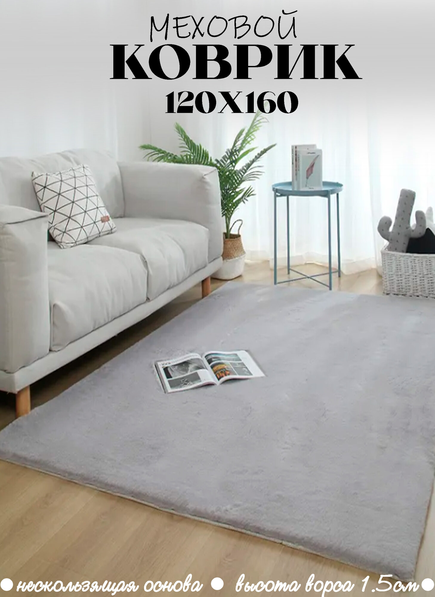 Ковер CarpetDom меховой, кролик, 120х160 см, светло-серый информация: