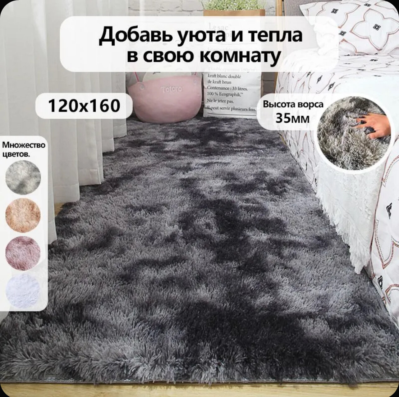 Отзывы на Ковер на пол с длинным ворсом меховой 160х120 см, темно-серый, мягкий, пушистый, антискользящий, в гостиную, спальню