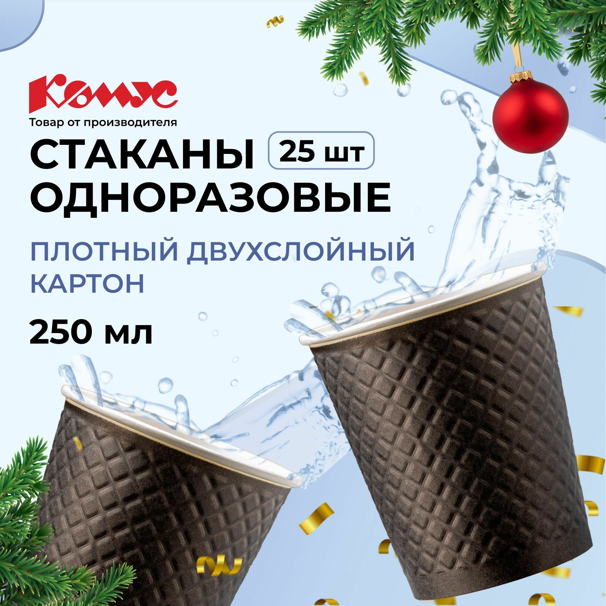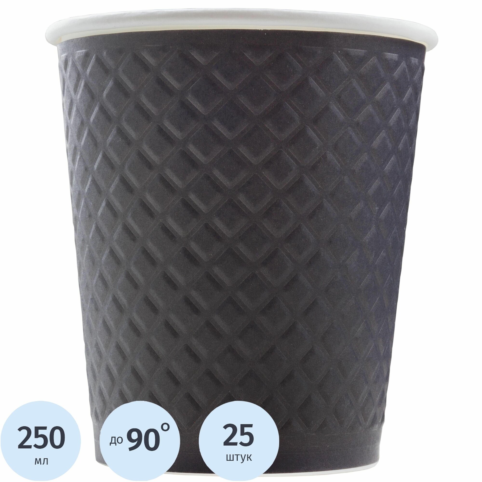 Стаканы одноразовые бумажные Комус, для горячих напитков, 250 мл, 25 штук, черные информация: