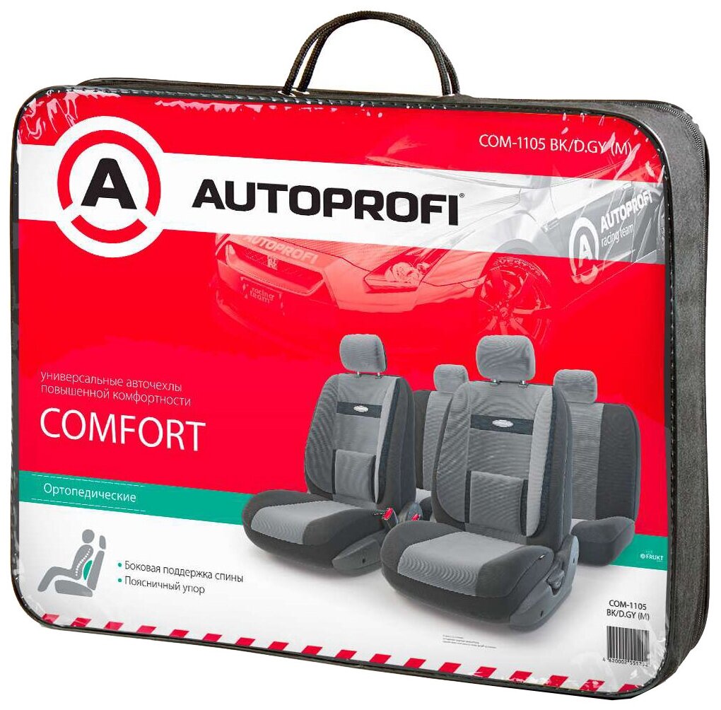 Com-1105 Bk/D.Gy (M)_чехлы Для Сиденья! Comfort, Карман, 6 Молний, Чёрн./Т.Серый, Разм.М AUTOPROFI арт. COM-1105 BK/D.GY (M) 4 963 ₽