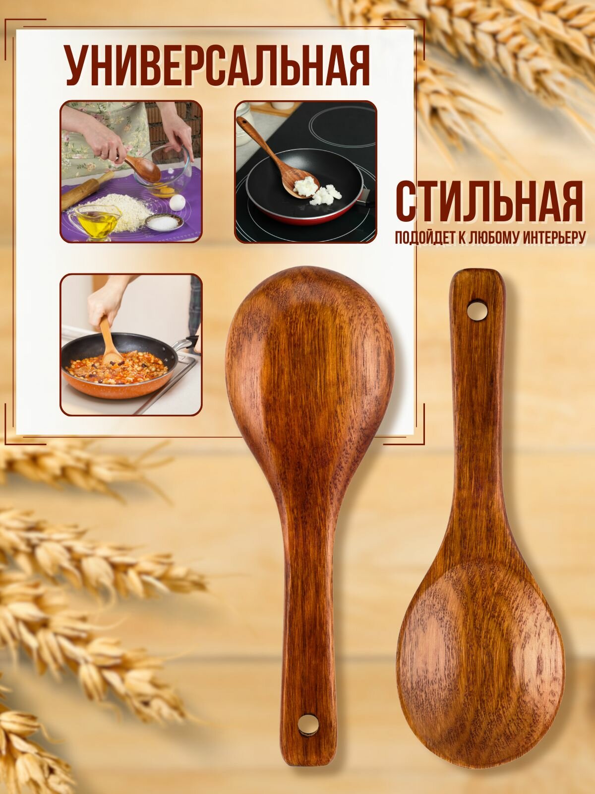 Ложка для риса СКДрево из тикового дерева с короткой ручкой, 19Х8 см, 1шт
