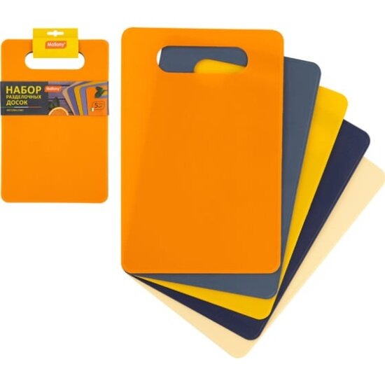 Набор разноцветных пластиковых разделочных досок 19x29см, 5шт, толщина 2,4 мм