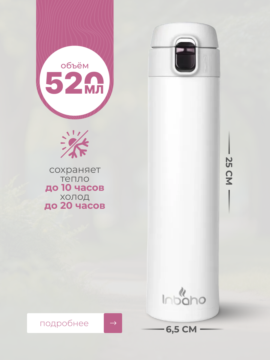 Термокружка белая для кофе и чая Inbaho 520 мл кружка термос автомобильная - белый информация:
