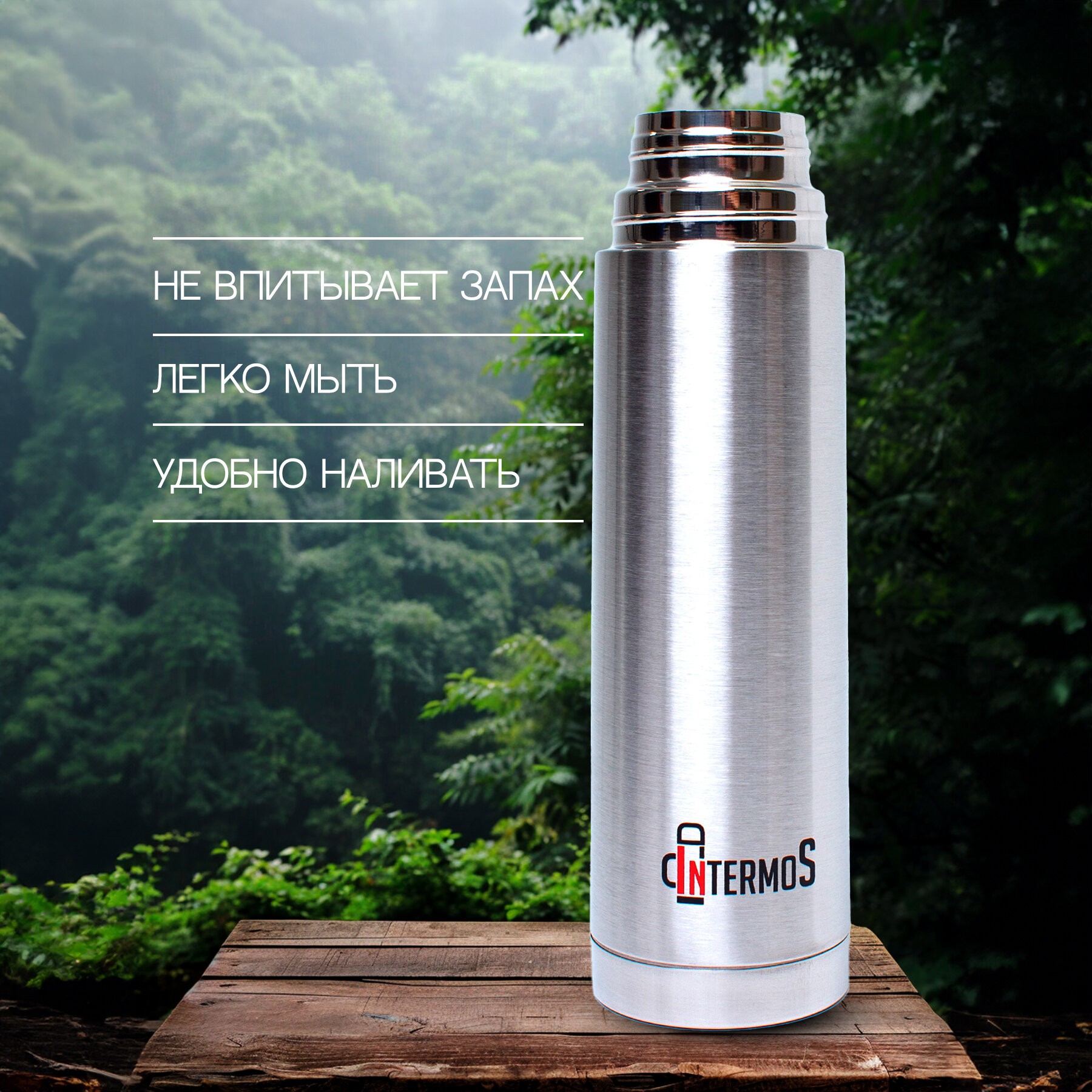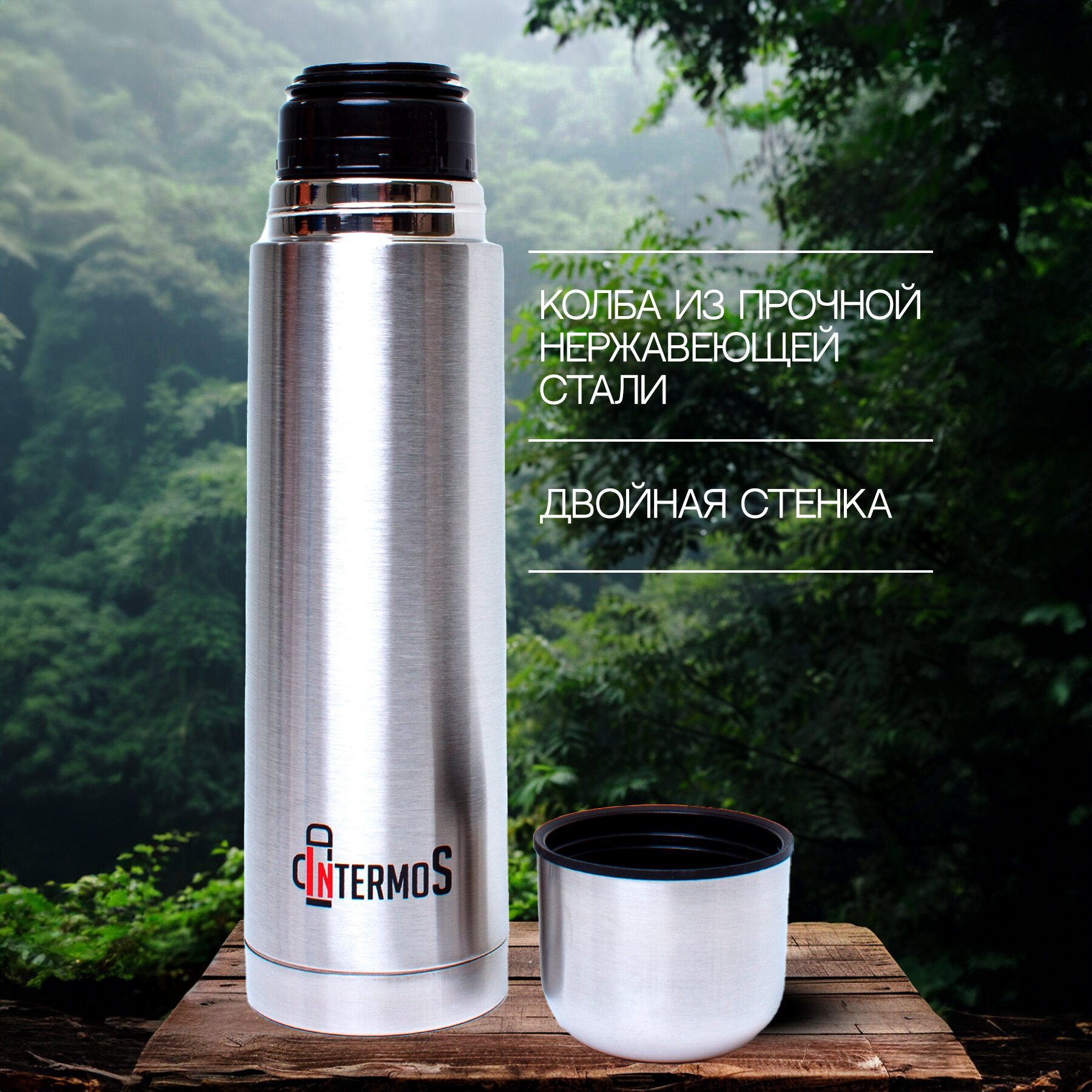 Intermos Термос для чая с узким горлом с кнопкой, нержавеющая сталь, 1000 мл