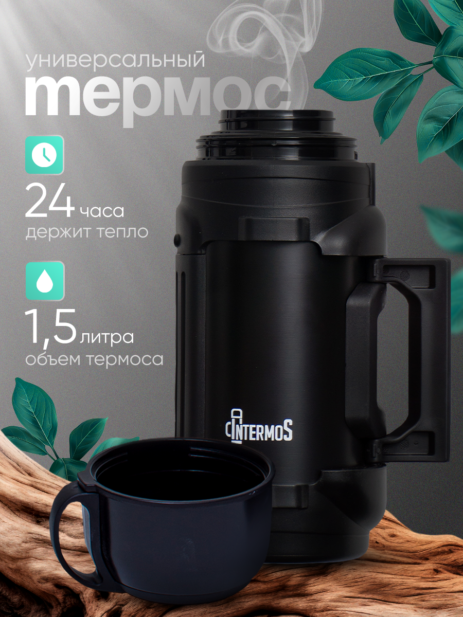 Термос IntermoS 1,5 литра, из нержавеющей стали, цвет черный информация: