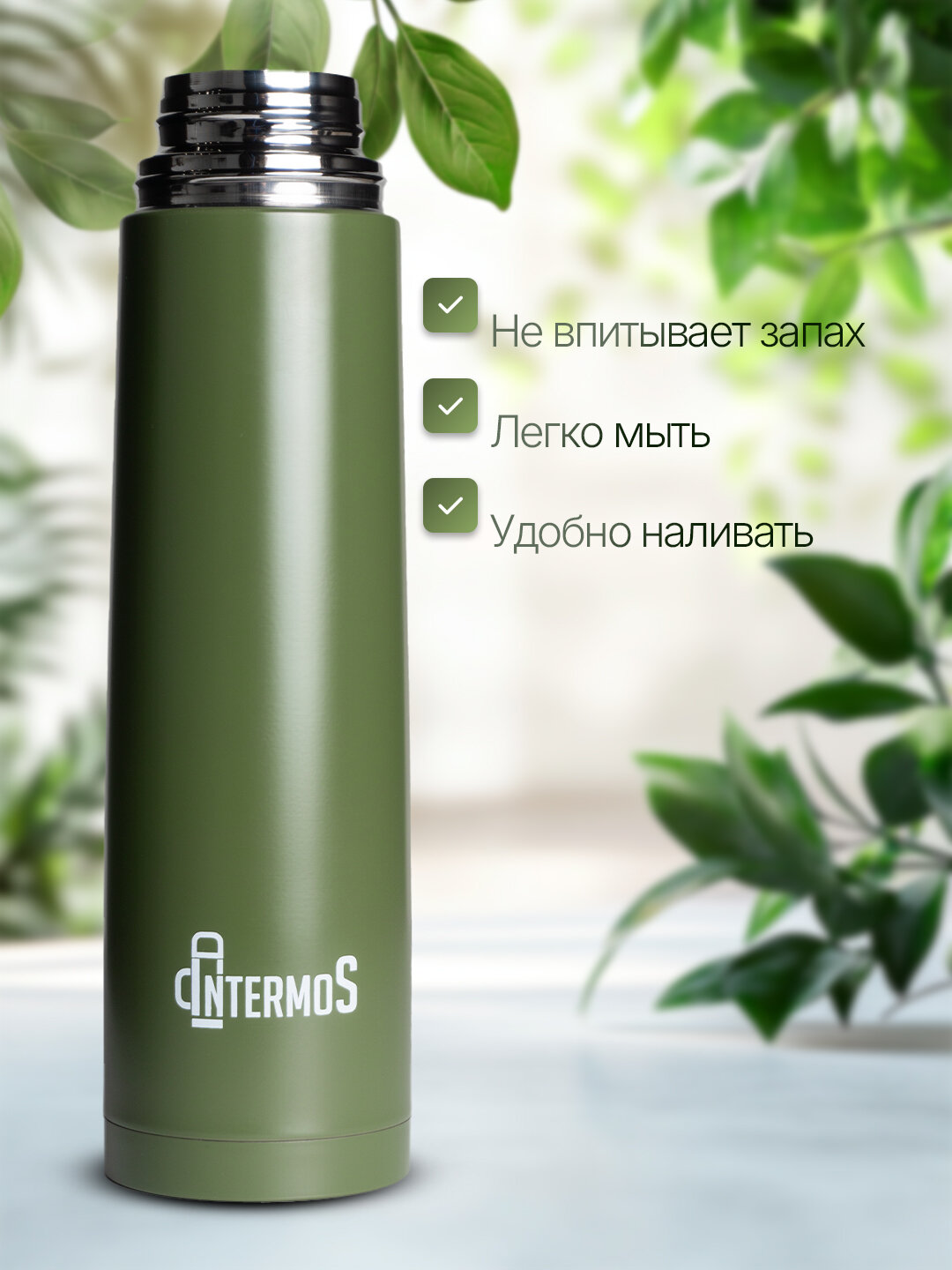 Intermos Термос для чая с узким горлом с кнопкой, нержавеющая сталь, 1000 мл
