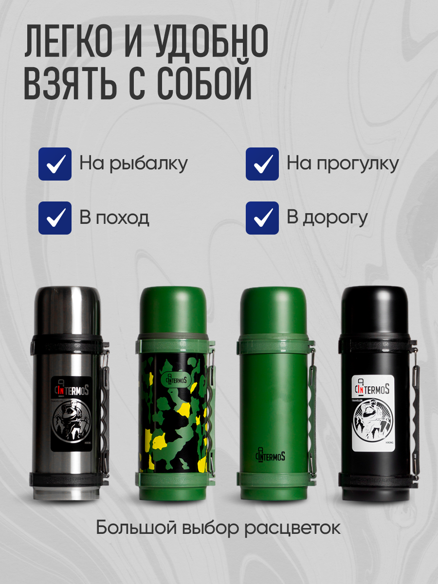 Термос "Intermos" 1,2 л., с широким голом, чашкой, ремнем для переноски, нержавеющая сталь, цвет черный 1 190 ₽