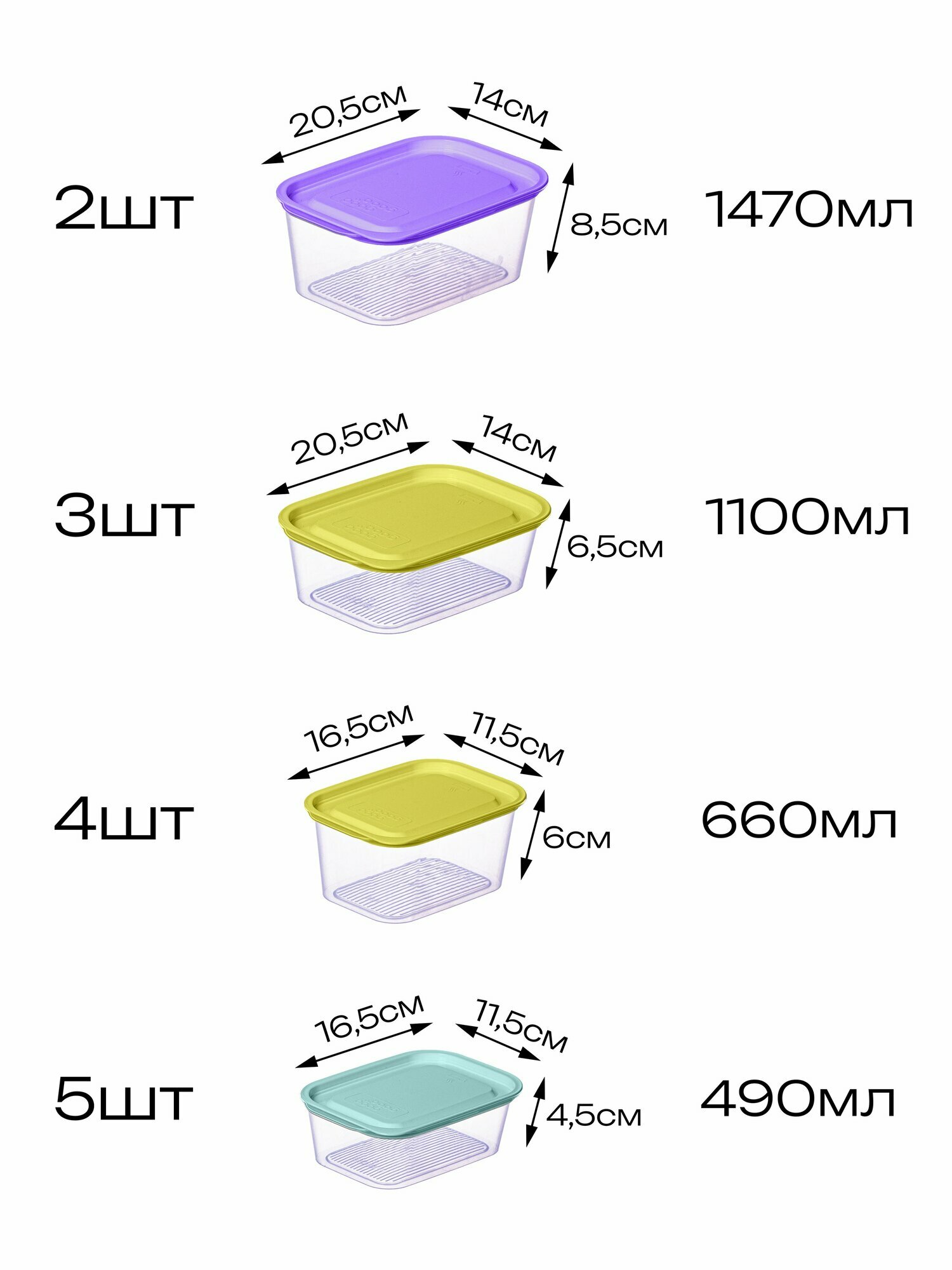 | Комплектация | контейнер 0,23 л - 5 шт; контейнер 0,49 л - 5 шт; контейнер 0,66 л - 3 шт; контейнер 1,1 л - 2 шт; контейнер 2,6 л - 2 шт. |