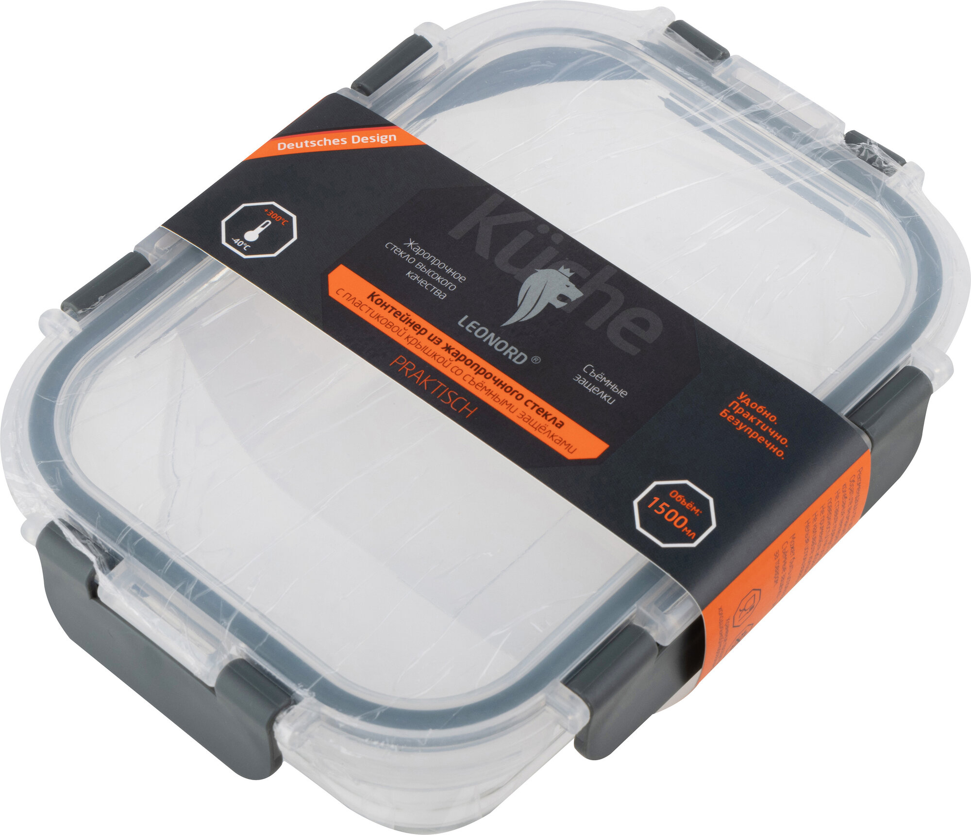 Контейнер Leonord из жаропрочного стекла с пластик крышкой со съёмными защёлками Praktisch объем: 600 мл 625 ₽