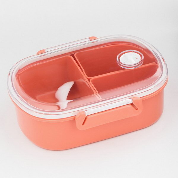 Отзывы на Ланч-бокс в школу, контейнер для еды "Эйлайт", 640 мл, с ложкой, 18.5x14x6.3 см, пластик, розовый