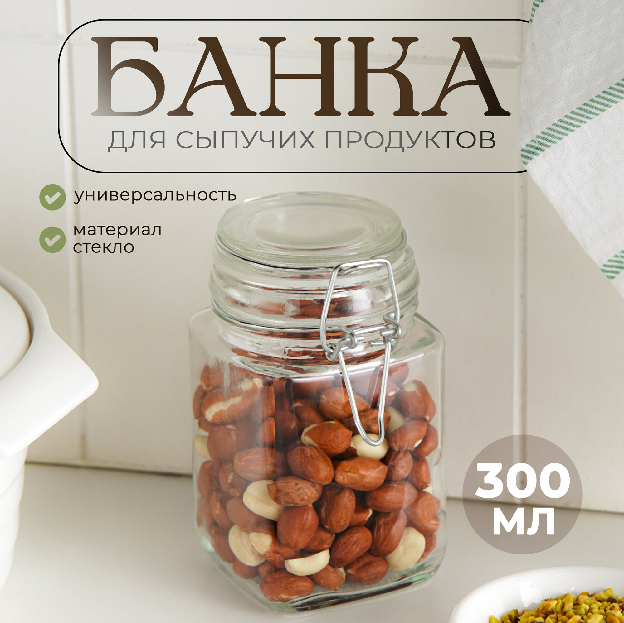 Банка стеклянная для сыпучих продуктов и специй с бугельным замком Доляна «Квадрат», 300 мл информация: