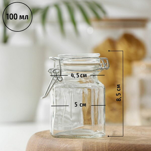 10 цен на Банка для сыпучих продуктов "Грани", 100 мл, 6x7x8 см, с бугельным замком, стекло, прозрачная