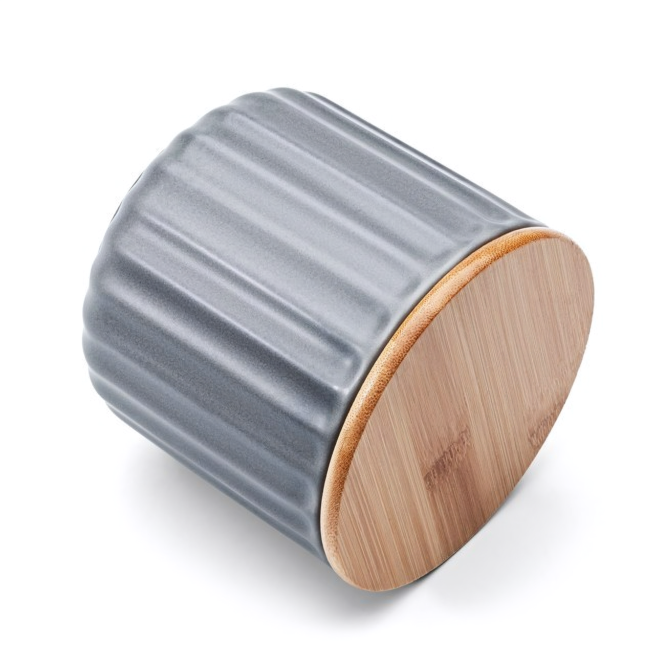 Банка для хранения сыпучих продуктов объём 1,2л, керамическая с деревянной бамбуковой крышкой APOLLO "Grecha" серая/графит 747 ₽