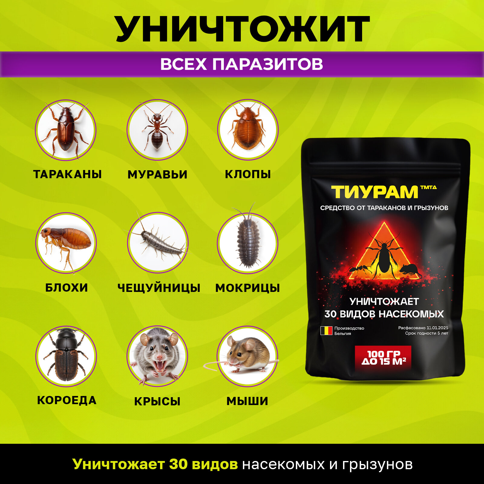 Средство от тараканов, Тиурам 100г, Самое мощное средство от тараканов в квартире, от муравьев, отрава для мышей, кабельный порошок. 546 ₽