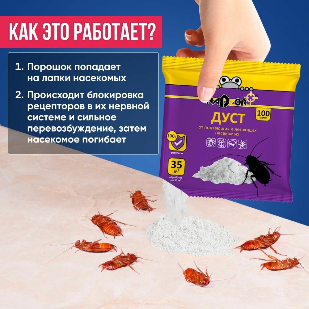 Отзывы на Дуст от тараканов Nadzor без запаха / Средство от ползающих и летающих насекомых, тараканов, муравьёв, блох, клопов, мух