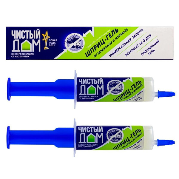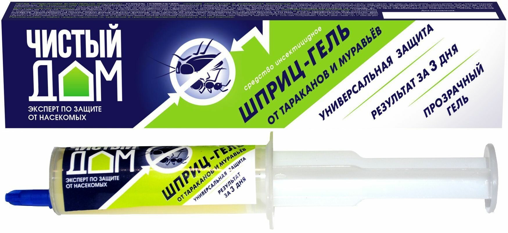 Гель Чистый дом шприц от тараканов и муравьёв, 20 г, 20 мл, прозрачный 88 ₽