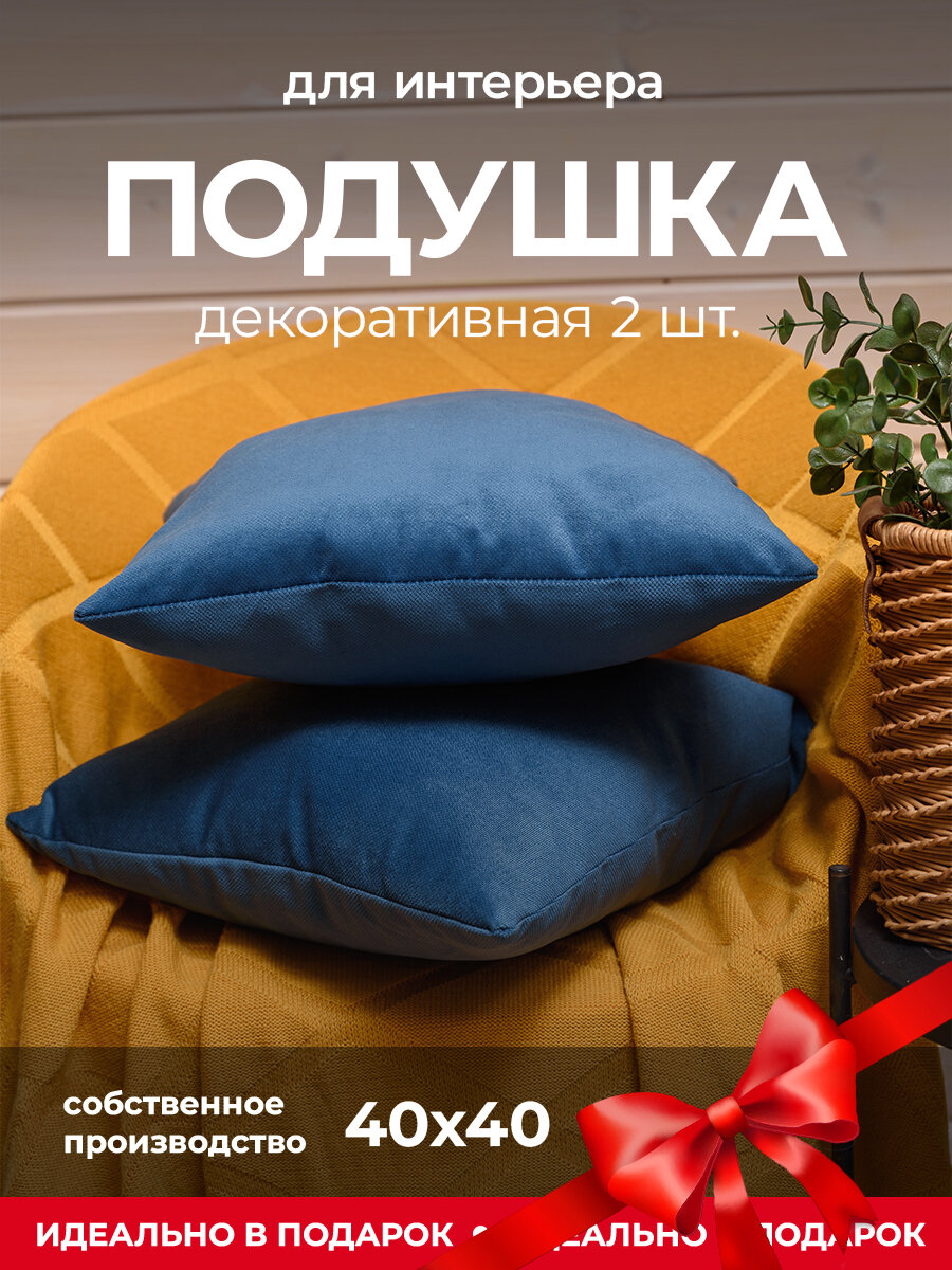 Отзывы на Подушки декоративные Bio Line, диванные подушки для интерьера, 40x40см, набор 2шт, синий