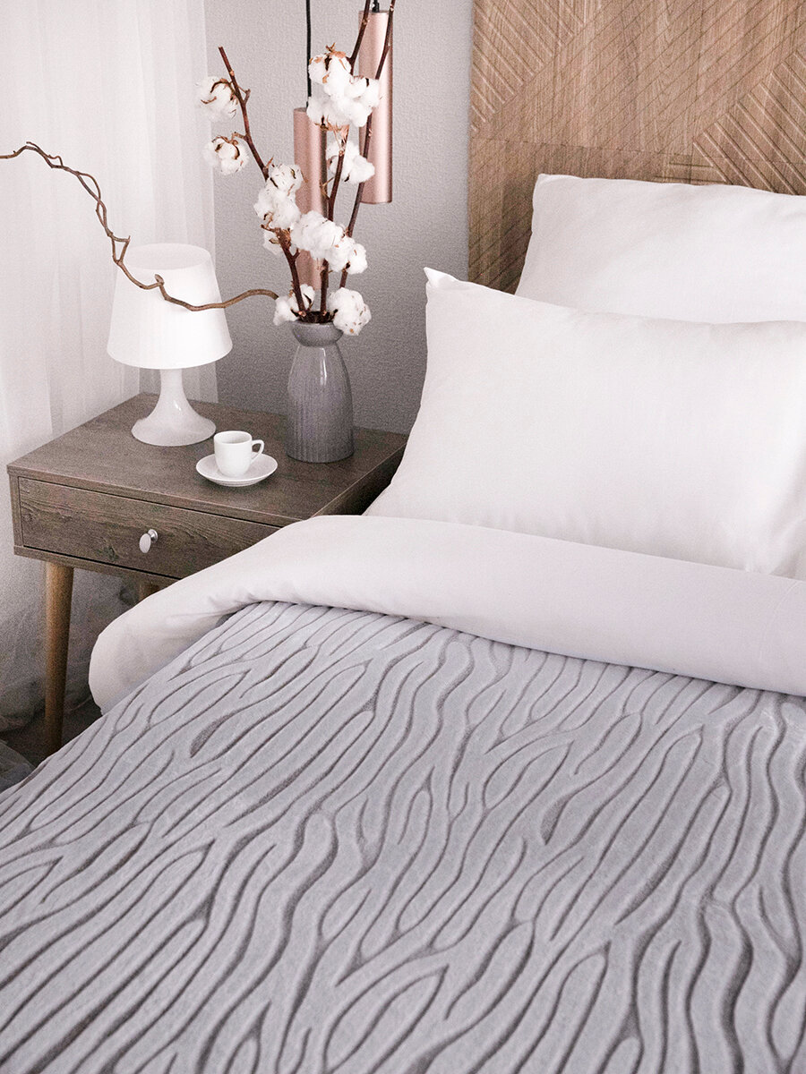 Плед покрывало 150Х200 см "Зебра", плюшевый на кровать, серый 1 087 ₽