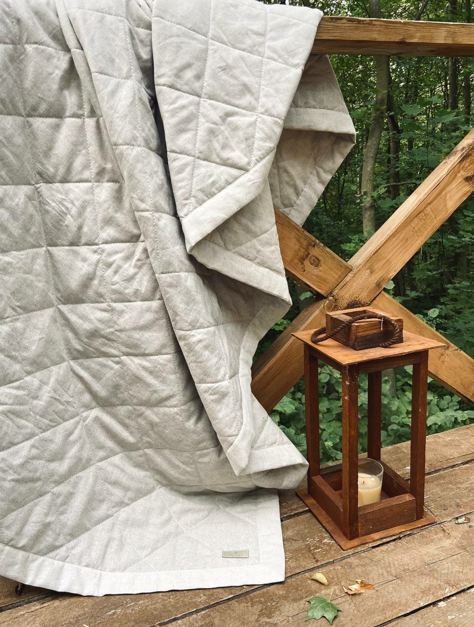 Отзывы на Льняное стеганое покрывало на кровать Natural, 225х215 см, Лен, плед