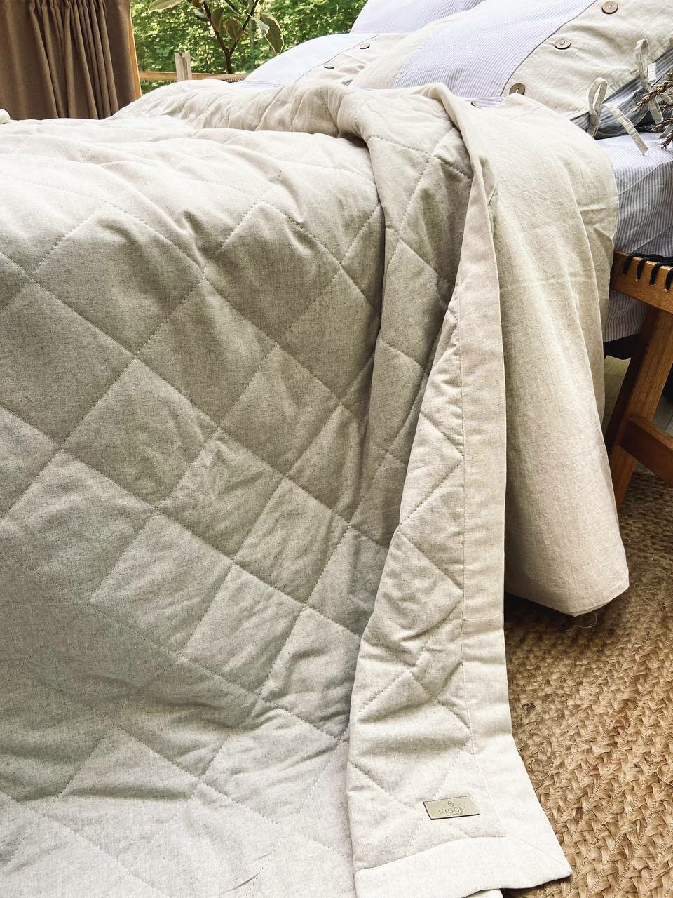 Льняное стеганое покрывало на кровать Natural, 225х215 см, Лен, плед информация: