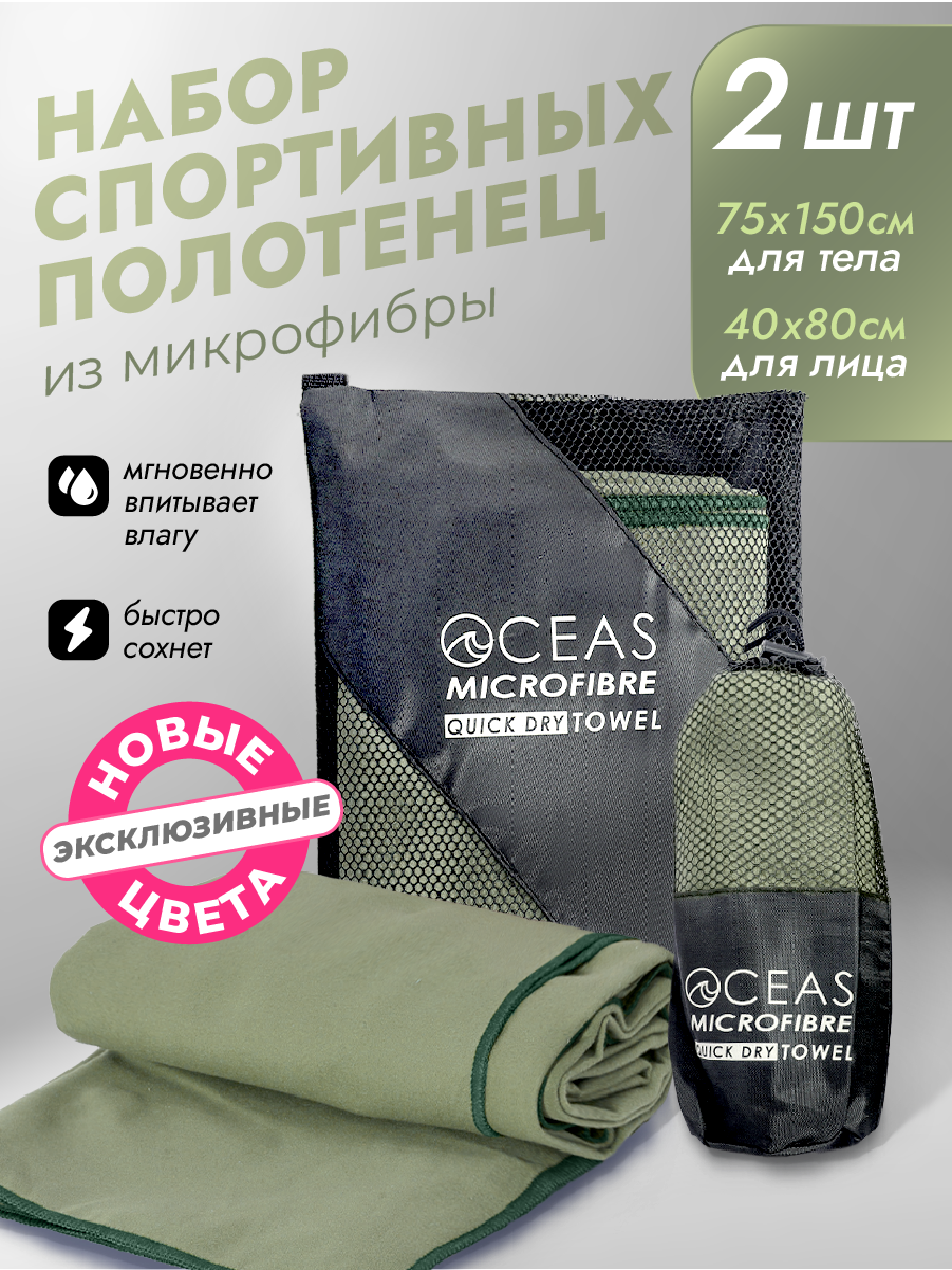 10 цен на Набор спортивных полотенец OCEAS из микрофибры , быстросохнущее для фитнеса и йоги, 150х75 см, 40х80 см, хаки