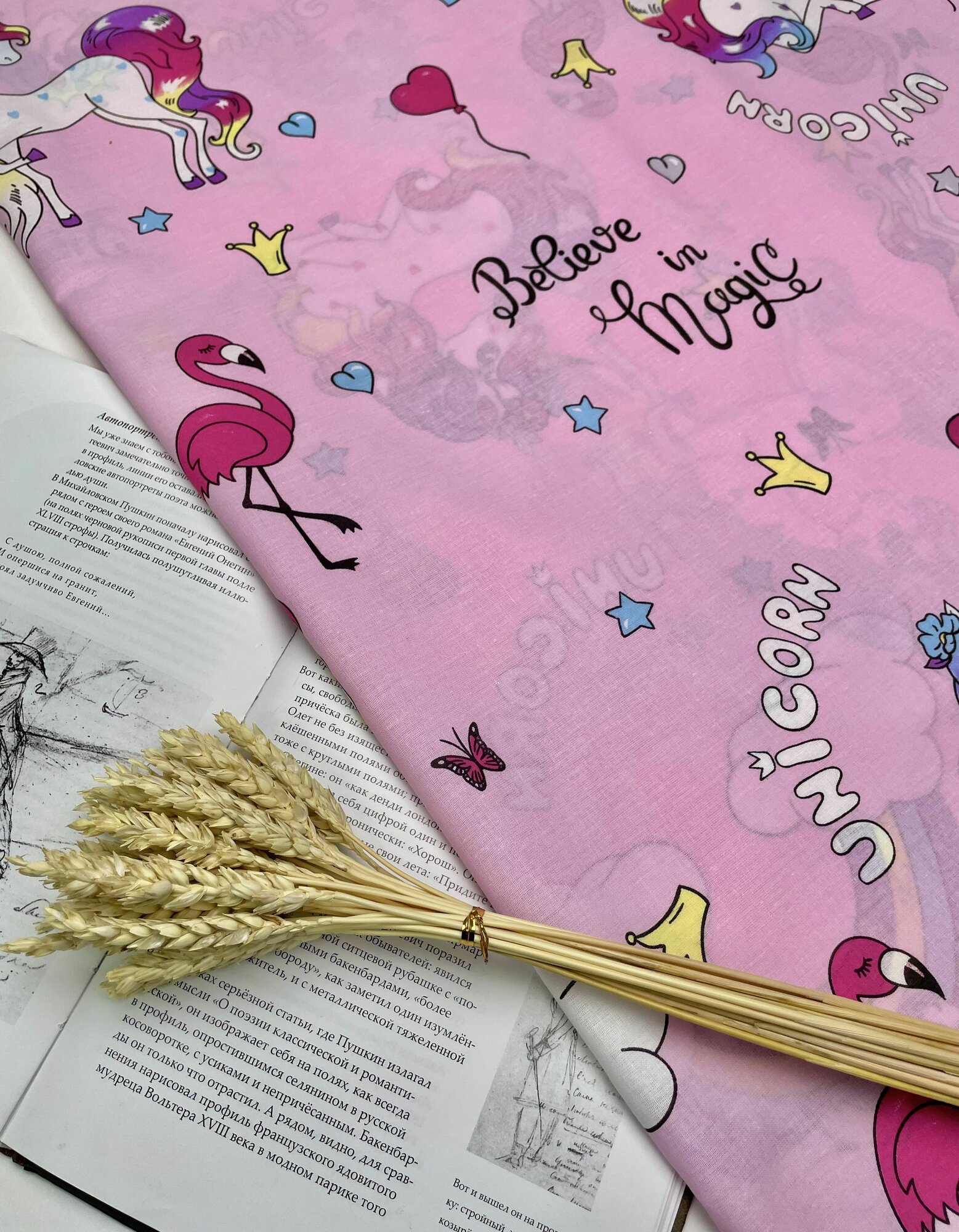 Ткань Поплин для постельного белья Единорожек / 1.5 п. м. / ширина 220 см / 100% хлопок / 105 гр. кв. м информация:
