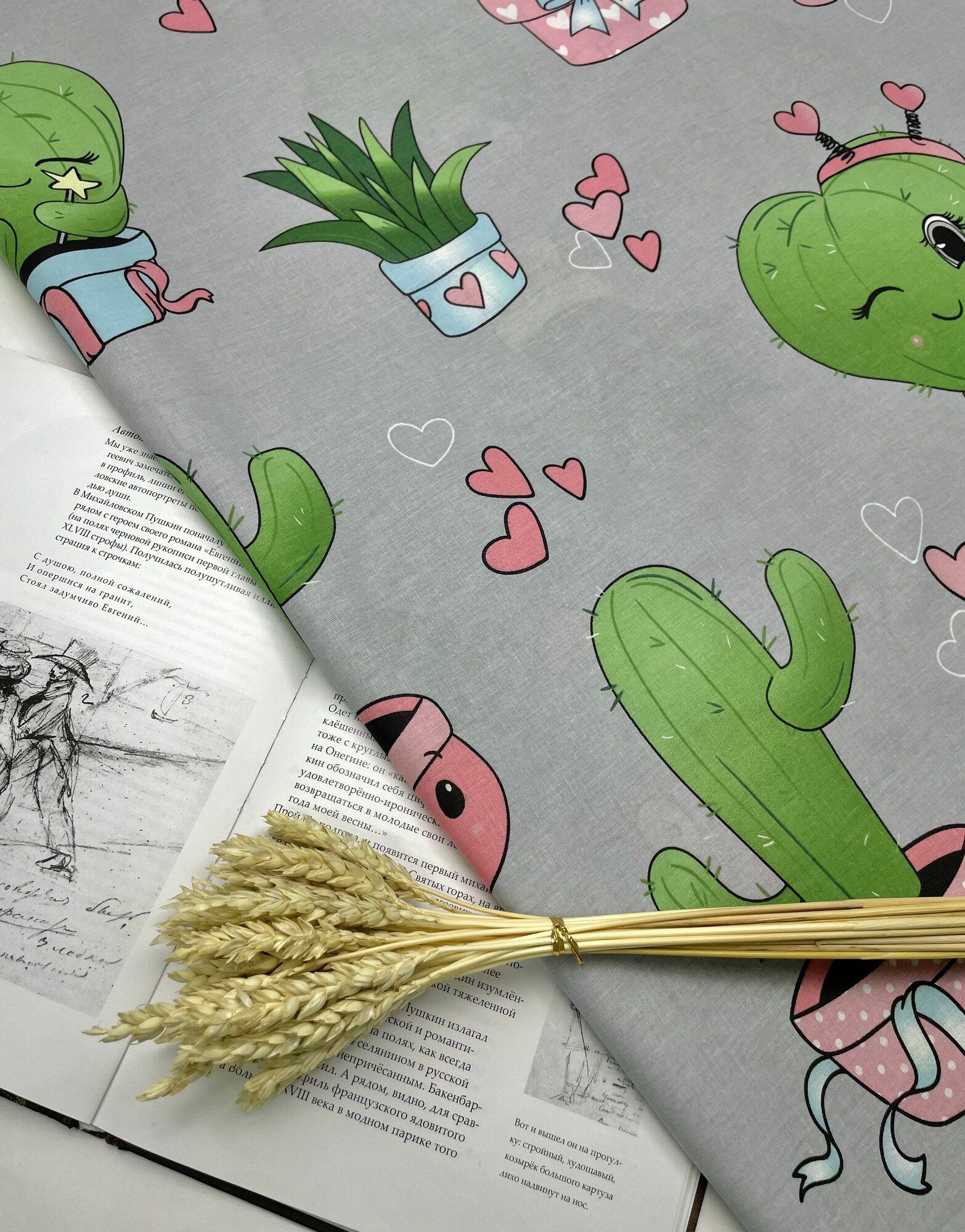 Ткань Поплин для постельного белья Кактусята / 3 п. м. / ширина 220 см / 100% хлопок / 105 гр. кв. м информация:
