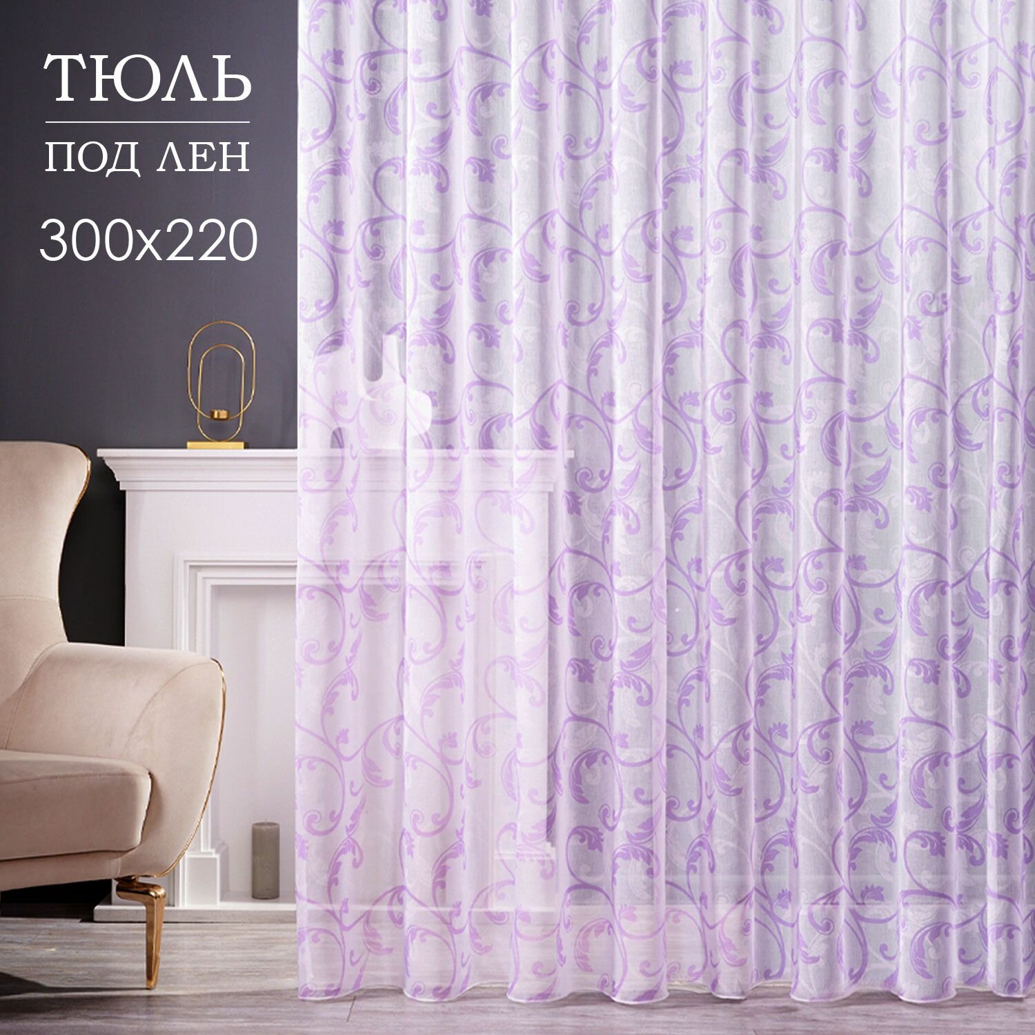 Готовый тюль под лен ширина 300 см высота 220 см с утяжелителем; занавеска 3 м для комнаты 1 919 ₽