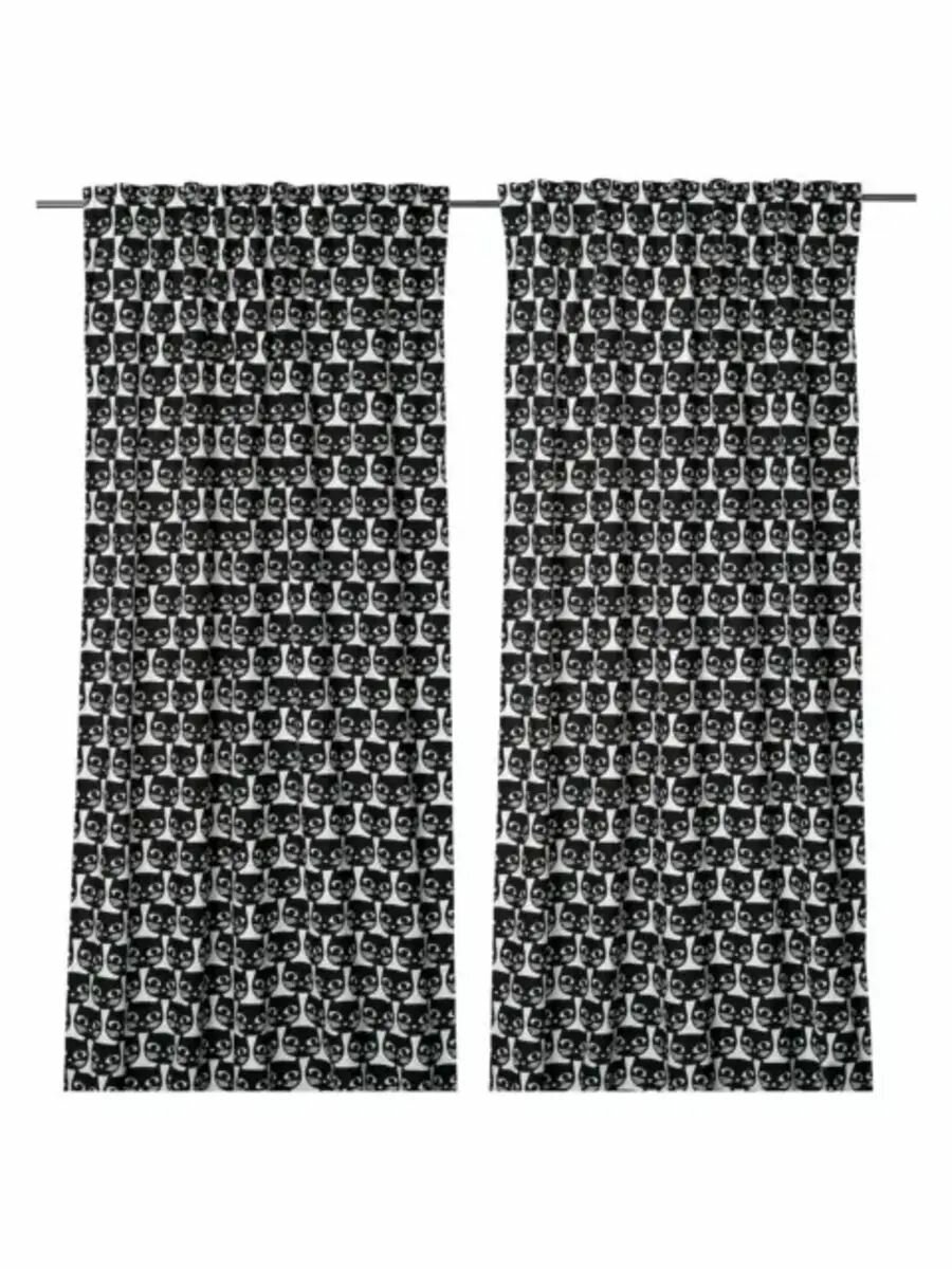 Гардины, 2 шт. 145x300 см белый черный/кот IKEA MATTRAM маттрам информация: