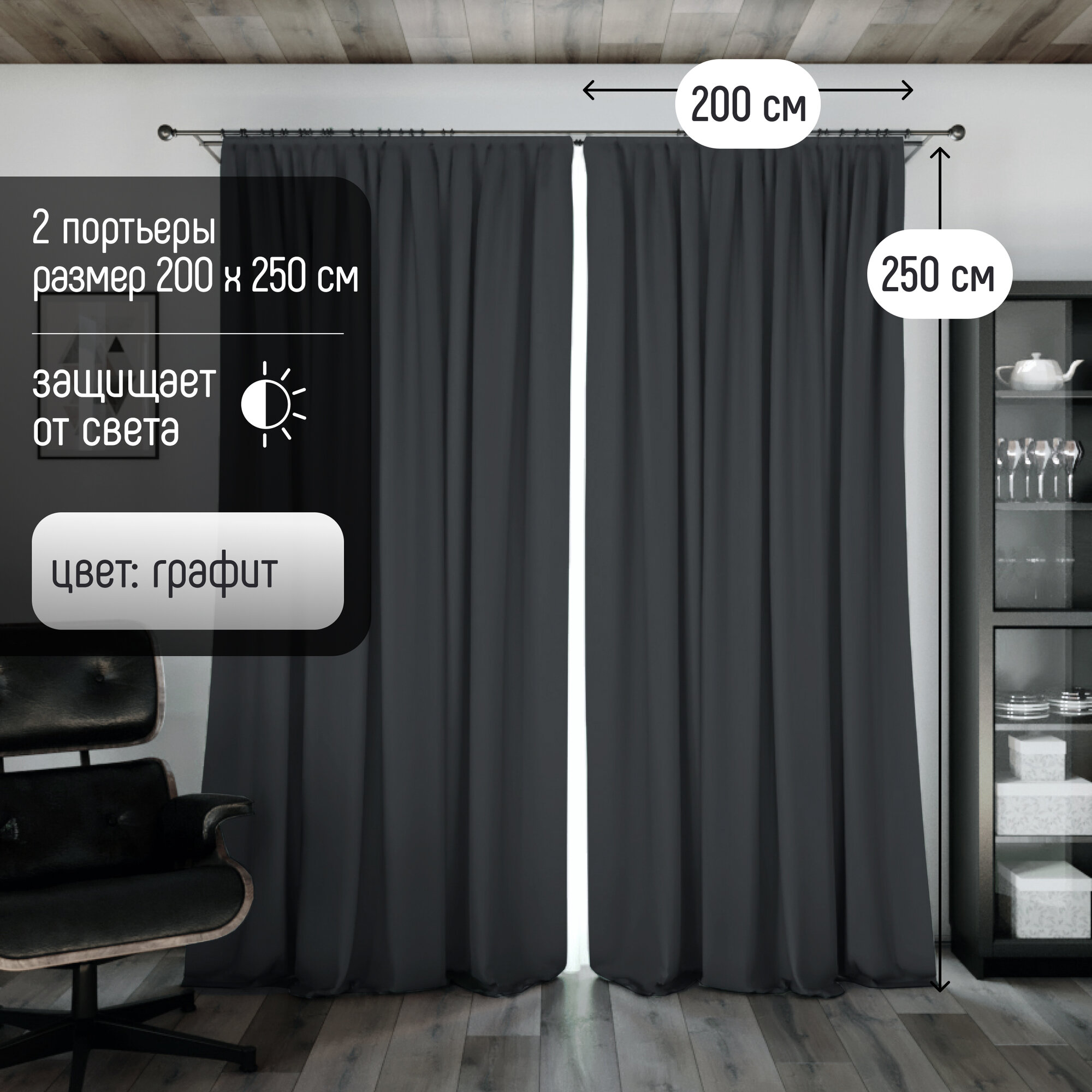 Комплект штор Блэкаут (2 шт.) В250 х Ш400, ткань Димаут, затемняющие шторы для спальни гостиной кухни детской, светонепроницаемость до 95% информация: