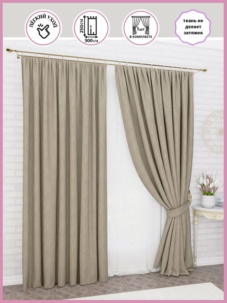 Штора Domamio канвас 300х250см - 1 шт, бежевый, для гостиной, для спальни, детской и кухни, плотные, ночные информация: