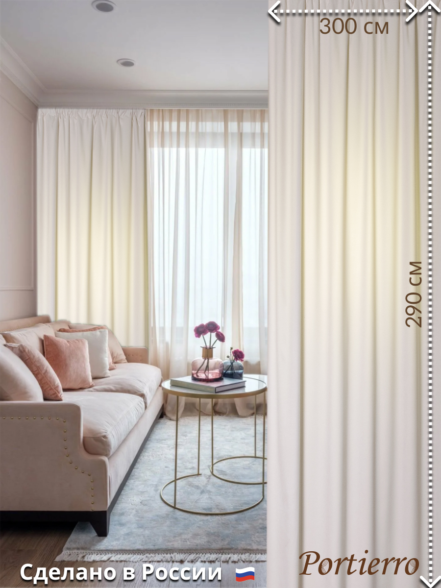 Комплект матовых портьерных штор 600x290 см, 2 штуки, канвас, цвет: слоновая кость информация: