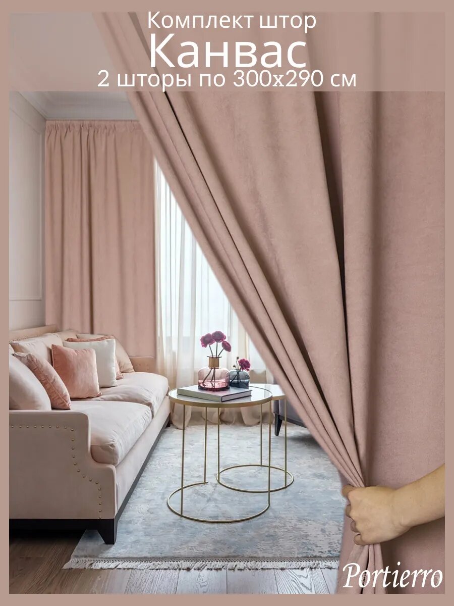 Комплект матовых портьерных штор 300x290 см, 2 штуки, канвас, цвет: розовый кварц 2 600 ₽