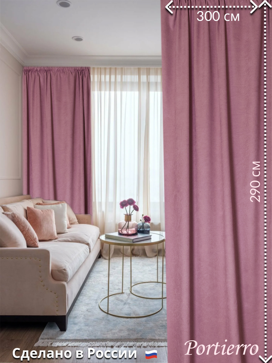Комплект матовых портьерных штор 600x290 см, 2 штуки, канвас, цвет: розовый кварц информация:
