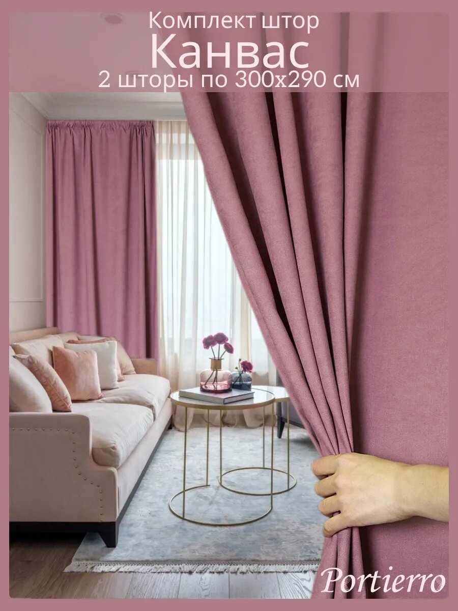 Комплект матовых портьерных штор 300x290 см, 2 штуки, канвас, цвет: розовый кварц 2 600 ₽