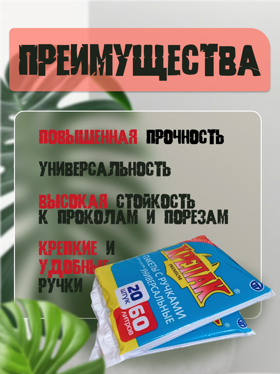 Отзывы на Мешки для мусора "Крепак", 2шт по 60 л, с ручками, ПНД, 13 мкм, 60х80 см, 20 шт, цвет чёрный