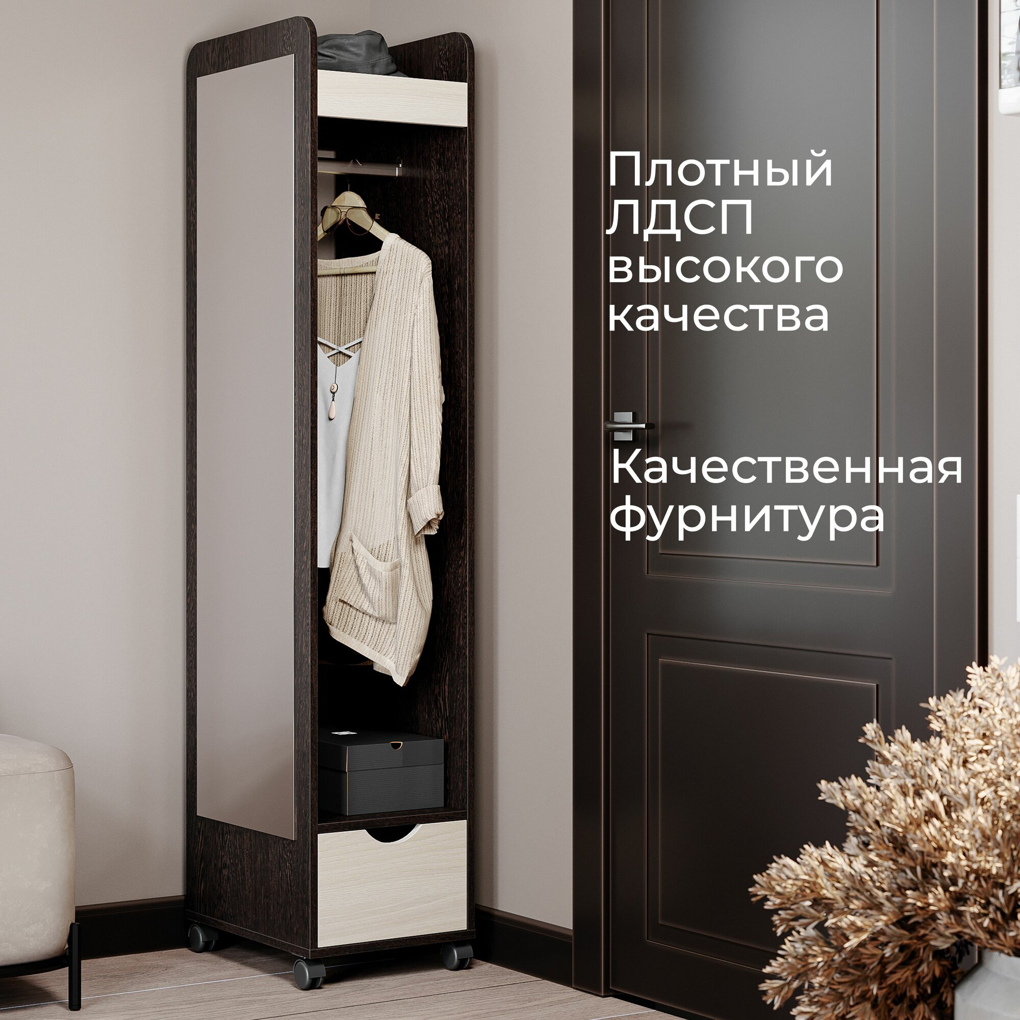 Прихожая мебель венге коричневый с зеркалом и ящиком (ВхШхГ) 173х36х46 см, Лайт секция 8 599 ₽