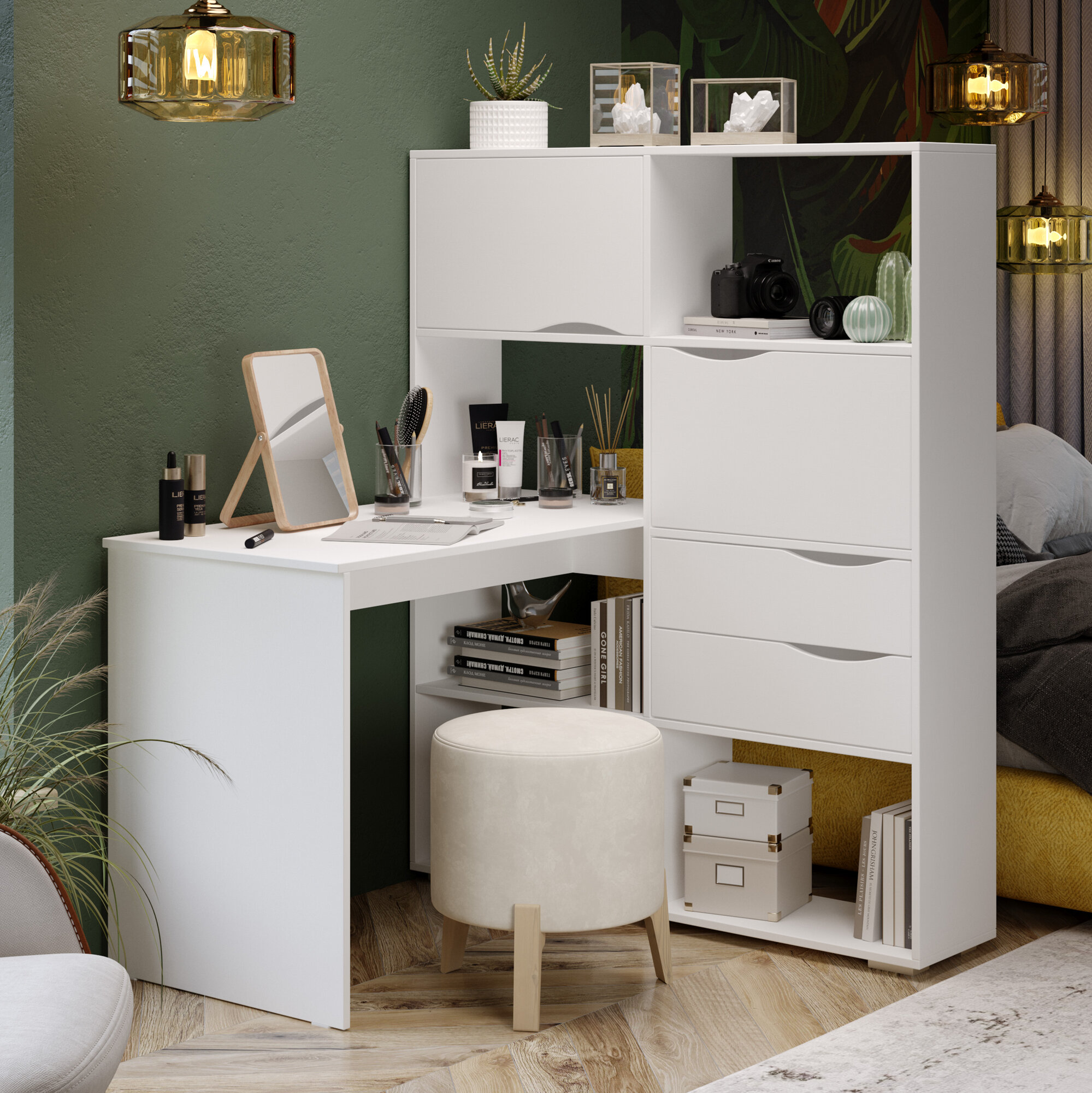 10 цен на Письменный стол ТриЯ тип 7 белый ясень с ящиком и стеллажом, 115х110х143 см
