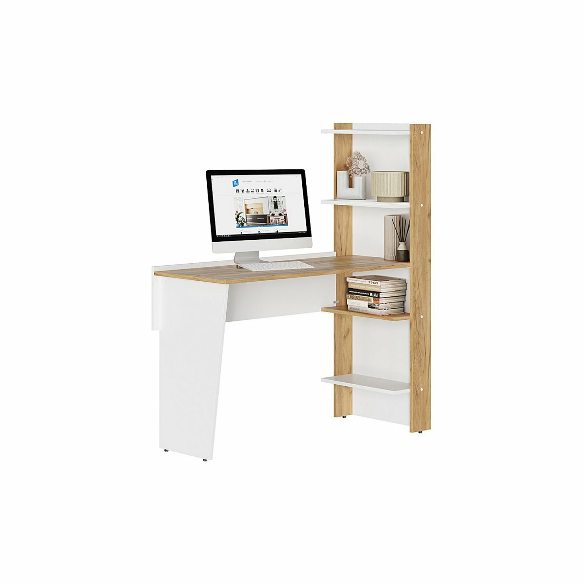 Компьютерный, письменный стол Альфа с ящиками, 106х50.4х76 см, Дуб Крафт золотой / Белый матовый