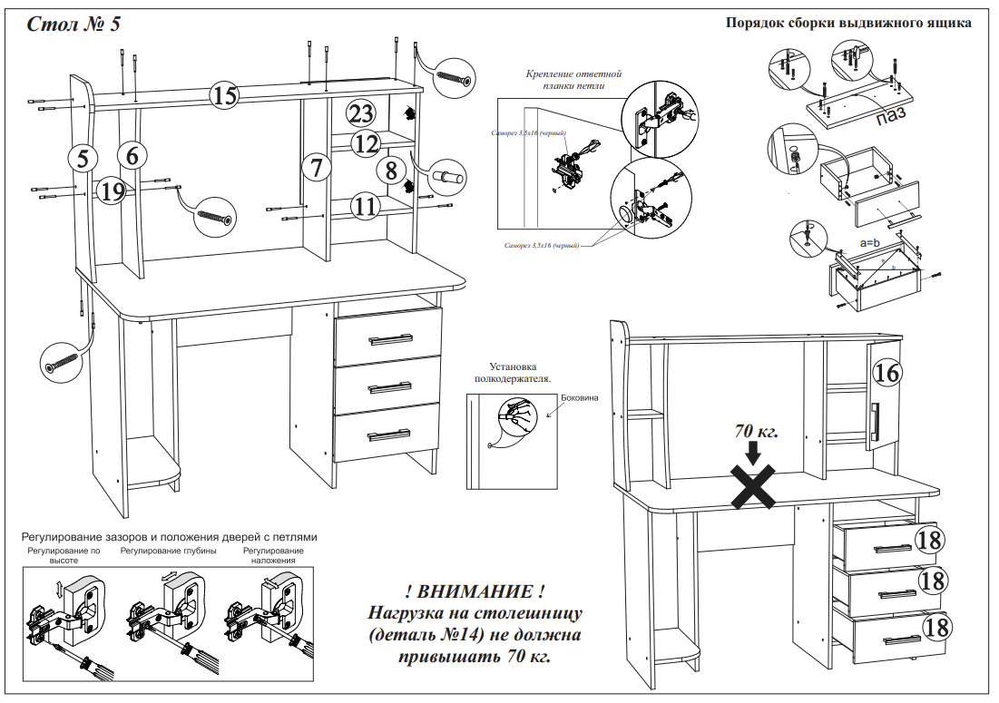 | Особенности | надстройка, отделение для системного блока, полка для клавиатуры, полка для принтера, с тумбой, с ящиком для хранения, угловой |