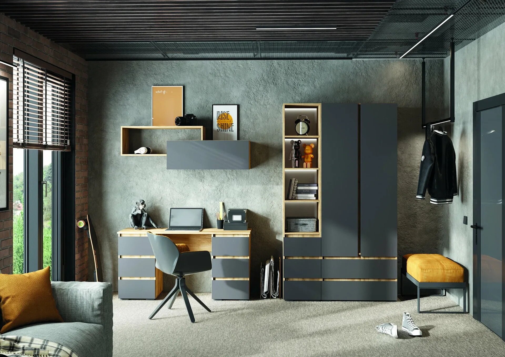 Письменный стол с ящиками для школьника Хелен ПС 02 (1420х730х500) графит/дуб крафт золото 10 600 ₽