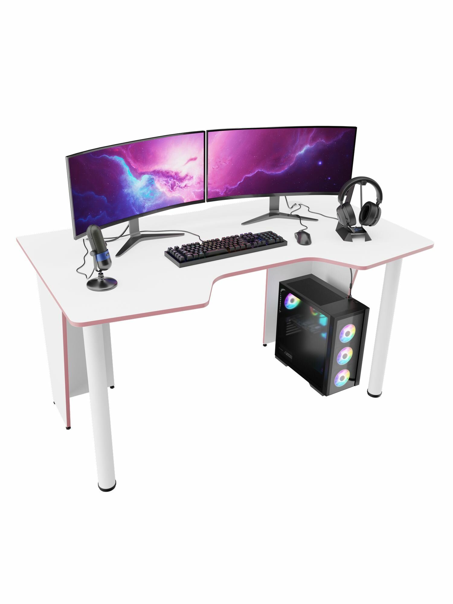 Игровой компьютерный стол FPS 140х78х73 Бело-розовый информация: