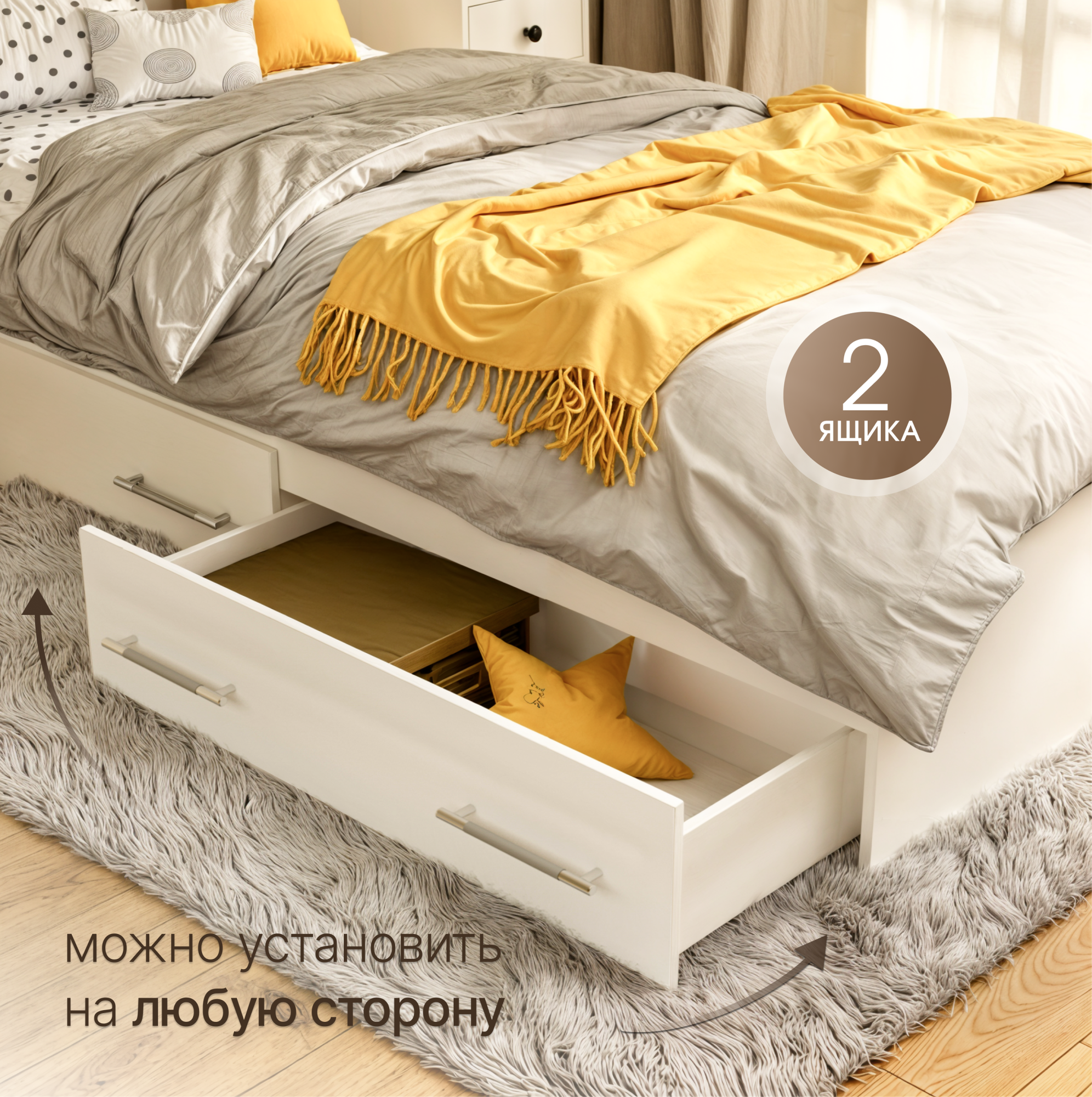 Кровать двуспальная Пора Спать Арина с ящиками и основанием ДСП, белая, спальное место: 200х140 см, габариты: 220х147 см 10 418 ₽