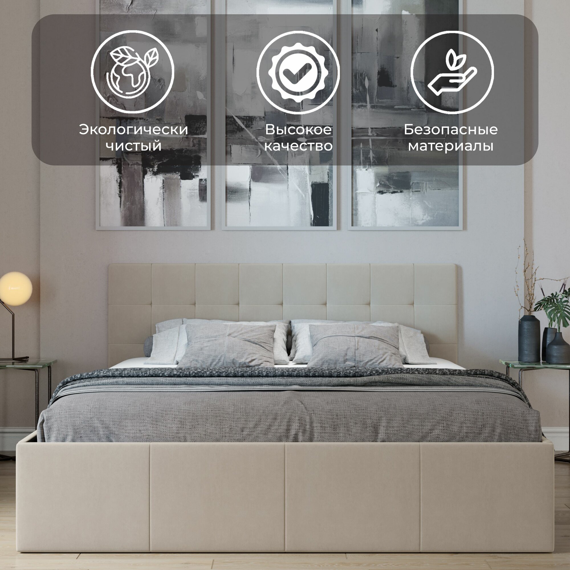 Кровать с подъемным механизмом, с мягкой обивкой и заглушиной бежевая светлая 160х200 Эмма (Велюр Confetti Cream) 23 999 ₽