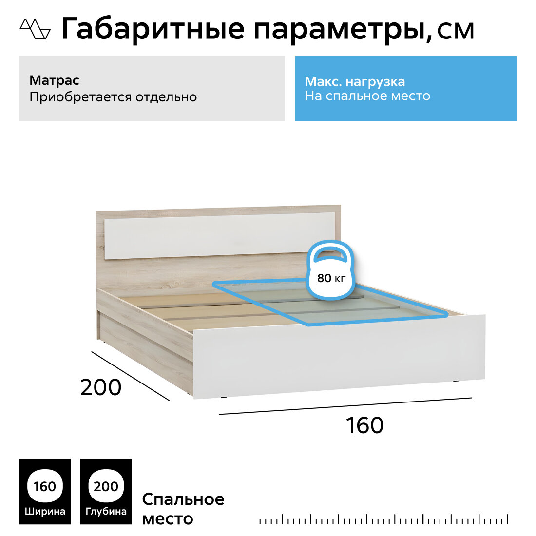 Кровать Миф Мартина; основание ДСП; белый / дуб сонома 203.7х123.5х80 см 9 990 ₽