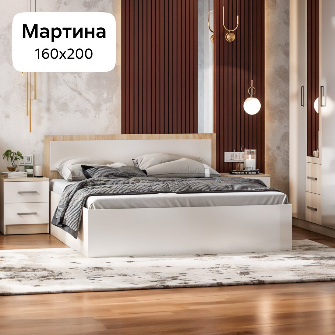 Кровать Миф Мартина; основание ДСП; белый / дуб сонома 203.7х163.5х80 см 8 890 ₽