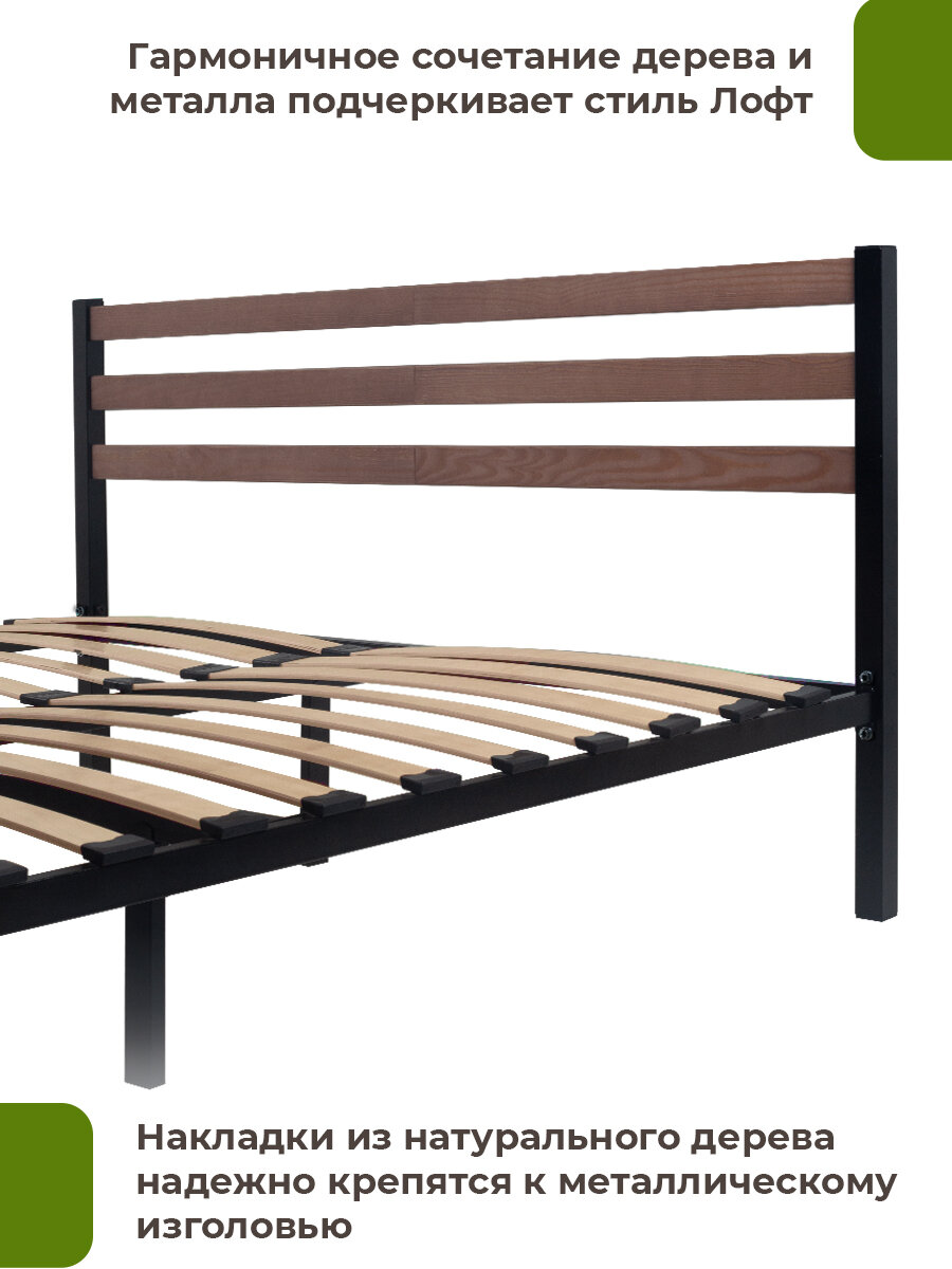 Кровать металлическая Сталь с деревянными декоративными накладками на изголовье в цвете НАТУРАЛЬНЫЙ 120х200, черная 14 510 ₽