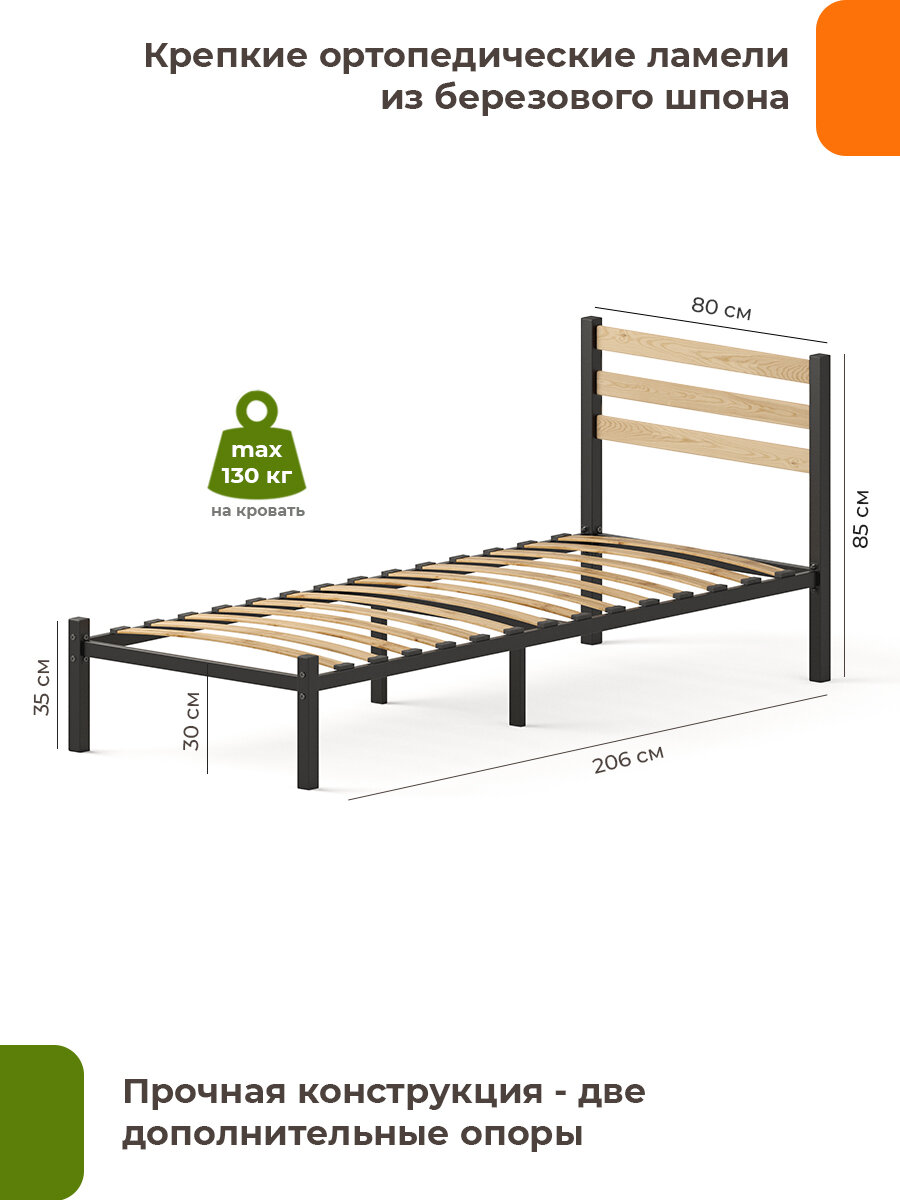 Отзывы на Кровать металлическая Сталь с деревянными декоративными накладками на изголовье в цвете НАТУРАЛЬНЫЙ 80х200, черная