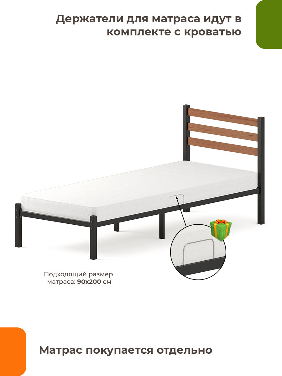 10 цен на Кровать металлическая Сталь с деревянными декоративными накладками на изголовье в цвете ДУБ 90х200, черная