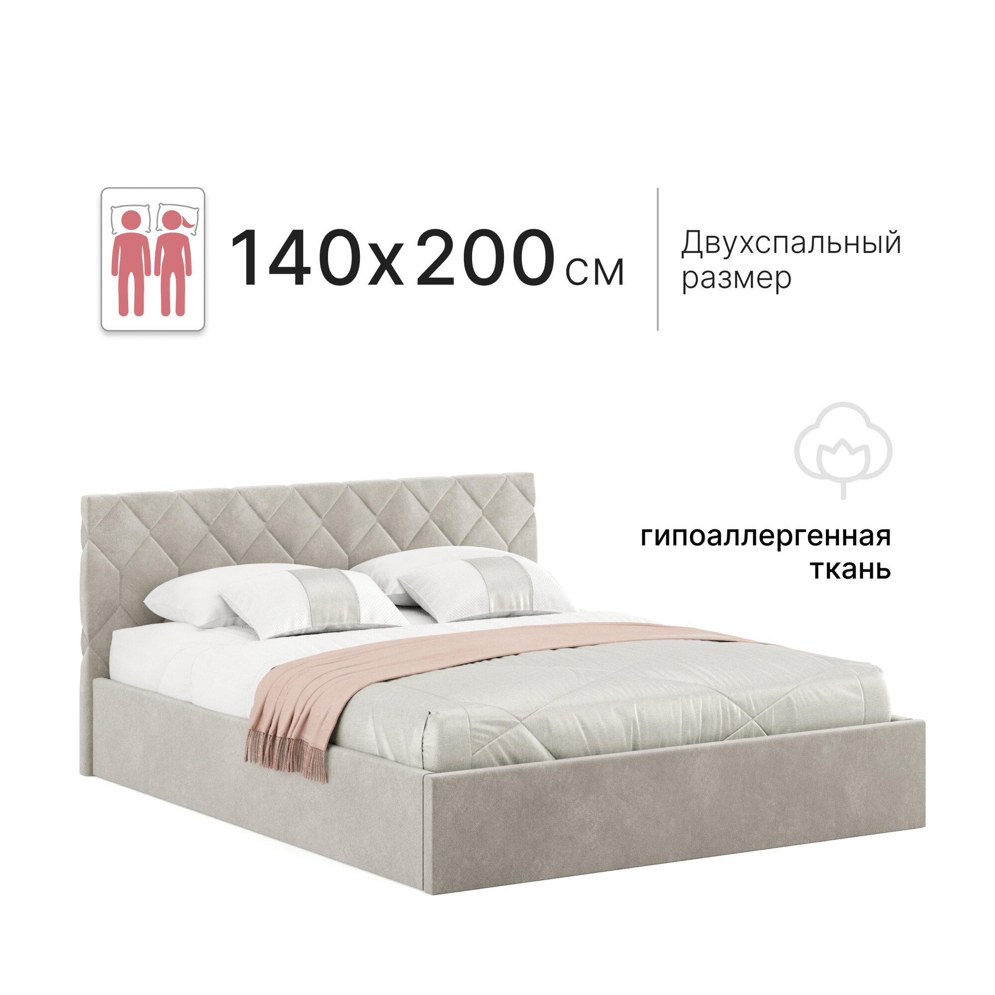 Кровать 140х200 с подъемным механизмом двуспальная Техас с ортопедическим основанием и ящиком для белья, мягкое изголовье, для спальни и дома, велюр светло-серый 19 990 ₽